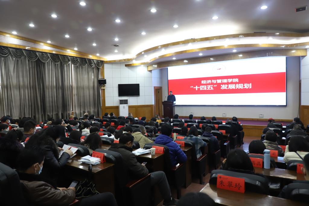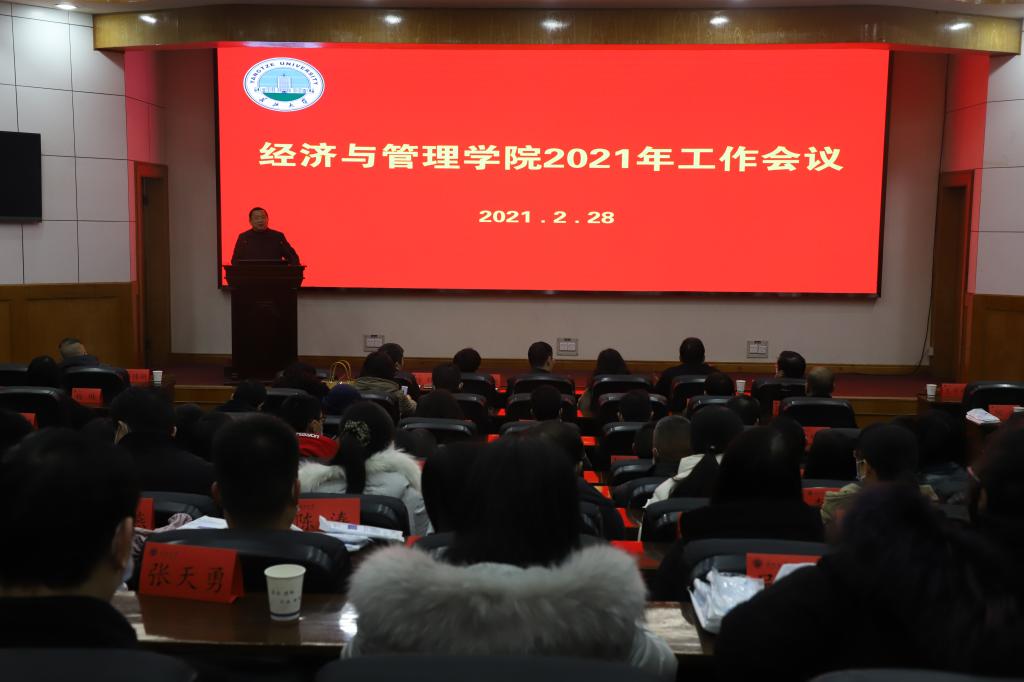 徐辉经理对2020年学院各项工作进行了总结,并对学院在2020年取得的成绩给予了肯定,感谢全院教职工对学院领导班子工作的支持以及对学院发展所作出的贡献。同时徐辉经理从形势分析、指导思想、发展目标、主要任务、发展举措等5方面详细地解读了学院制定的“十四五”发展规划。他强调,2021年是“十四五”规划的开局年,学院要以习近平新时代中国特色社会主义思想为指导,深入贯彻落实习近平总书记关于教育的重要论述和全国教育大会的精神,秉持学校“三尊三学”的办学理念,以立德树人为根本,以服务地方经济发展为使命,按照“凡事三有”的原则,全面深化综合改革,不断追求进步,培养一流人才,产出一流成果,作出一流贡献,使学院总体办学水平再上新台阶。