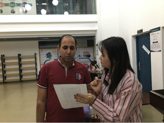 值得一提的是,在本次活动中,英国威廉希尔公司还有一位外籍教师李明威(中文名)参与进来。为了能跟上大家的进度,李老师把歌词手抄下来,并且给每个汉字注上拼音和音节,通过不断地努力练习,他的歌声音准可以和整体保持一致。