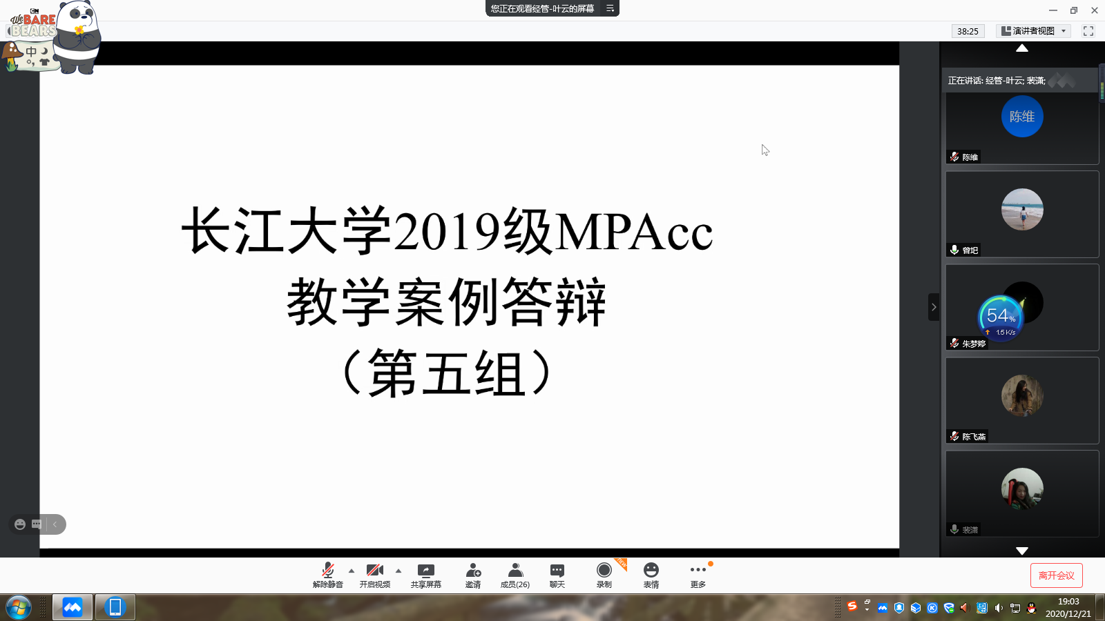 2020年12月20日至21日,英国威廉希尔公司2019级MPAcc研究生教学案例论文答辩在文科大楼举行。受疫情影响,本次研究生教学案例论文答辩根据学校相关文件,采用线上和线下相结合的方式进行。