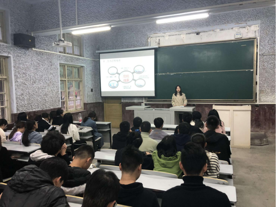 培训伊始,杨雪老师通过提出一系列有关心理危机的问题,与在场的同学进行了简单的互动,展开了本次培训的话题。杨老师主要为大家讲解了什么是心理危机,心理危机的特点,类型和影响,以及我们要如何识别心理危机并自助与助人。其中就危机中的自助与助人进行了更加深入的讨论,学习到自救中每个同学都不应冲动行事,而是主动寻求帮助并听从专业建议等;在助人的时候,员工干部更要发挥自身的职能,认真倾听TA的一切,陪伴支持与看护等,同时也着重强调了及时告知辅导员及心理中心的重要性。在“练习陪伴的力量”环节,同学们也积极踊跃上台进行了情景模拟。最后杨老师强调了员工骨干在危机干预中的职责,要求员工骨干主动关注危机信号,主动协助处理,及时上报主要信息并善待自己,以身作则。