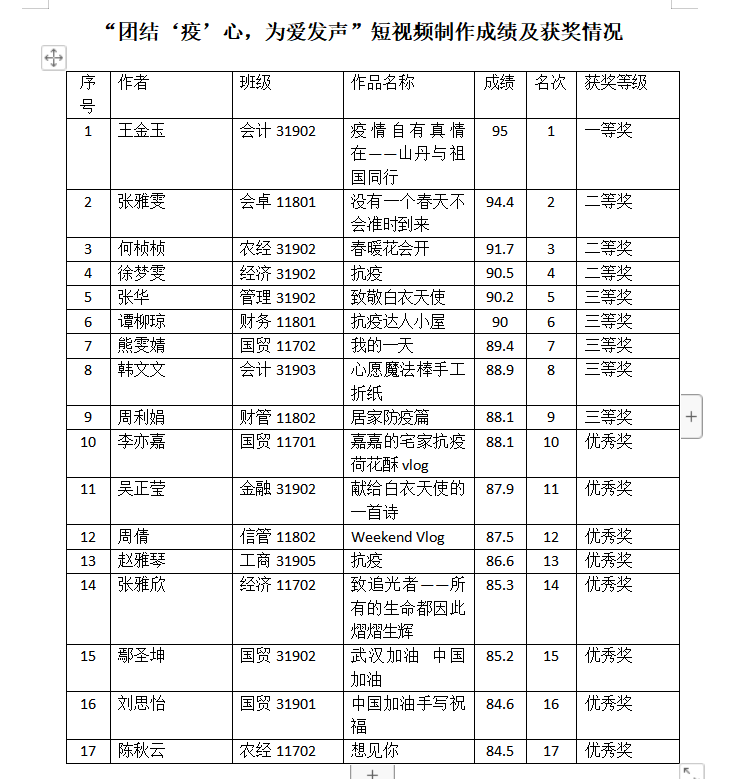 同学们的视频作品内容丰富,感情饱满,主题鲜明,表现了公司学子良好的价值观与社会责任感。据了解,“团结‘疫’心,为爱发声”线上主题活动的开展时间为3月19日至4月10日,历时23天。在同学们的积极参与下,心育部官Q自活动开始后点赞数达1300余次;“心愿墙”截止3月30日,共收到投稿数63篇,经筛选推送39篇;“短视频制作”活动截止4月10日,共收到73件作品,经评选有17件获奖,学院团委员工会官Q新增浏览量达10670次。