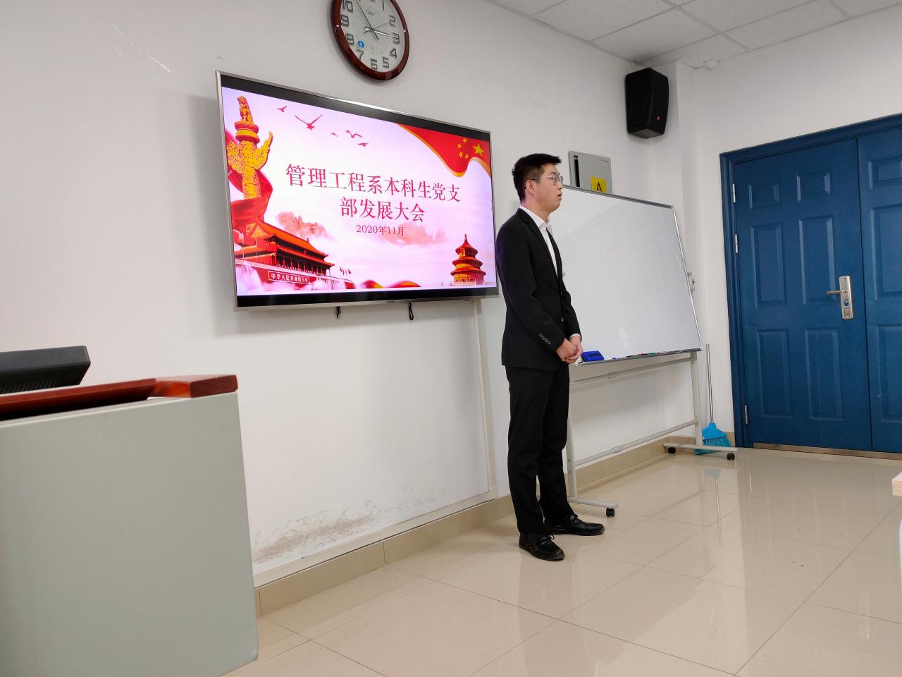 (通讯员 张洋)2020年11月24日下午14点,威廉希尔中文网站管理工程系本科生党支部于文科大楼417召开了新党员发展大会,会议讨论关于发展杨育等9位同志成为预备党员的事宜。本次会议由陆媛主持,参会人员有党支部书记李博老师、6位正式党员、10位预备党员与9位发展对象。