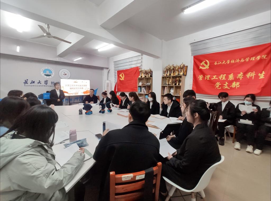 (通讯员 李丹萍)2021年11月25日晚上19点30分,威廉希尔中文网站管理工程系本科生党支部于新风二楼会议室召开了党员发展大会,会议讨论关于发展秦彬彬等7位同志成为预备党员的事宜。本次会议由张华主持,参会人员有党支部书记李博老师、5位正式党员、22位预备党员和7位发展对象。