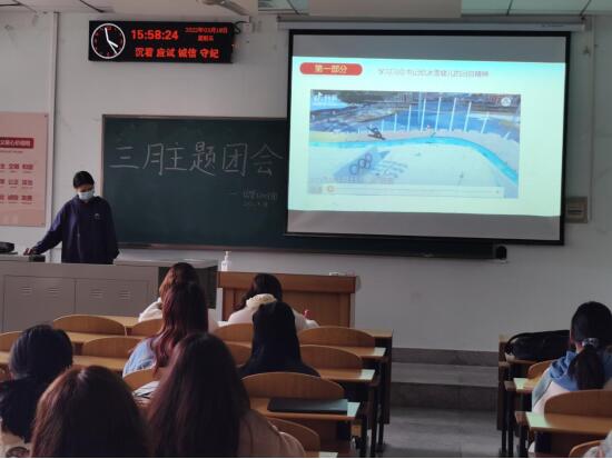 本次主题团会分为5大板块,主要围绕“学习习近平总书记给冰雪健儿的回信精神”展开。首先主持人的热情宣讲让同学们感受到了习近平总书记对教育、体育工作的高度重视和对广大青少年的亲切关怀。同时引导公司同学以中国冰雪健儿为榜样,坚定理想,刻苦学习,努力实现德智体美劳全面发展,在新时代新征程上留下无悔的奋斗足迹。
