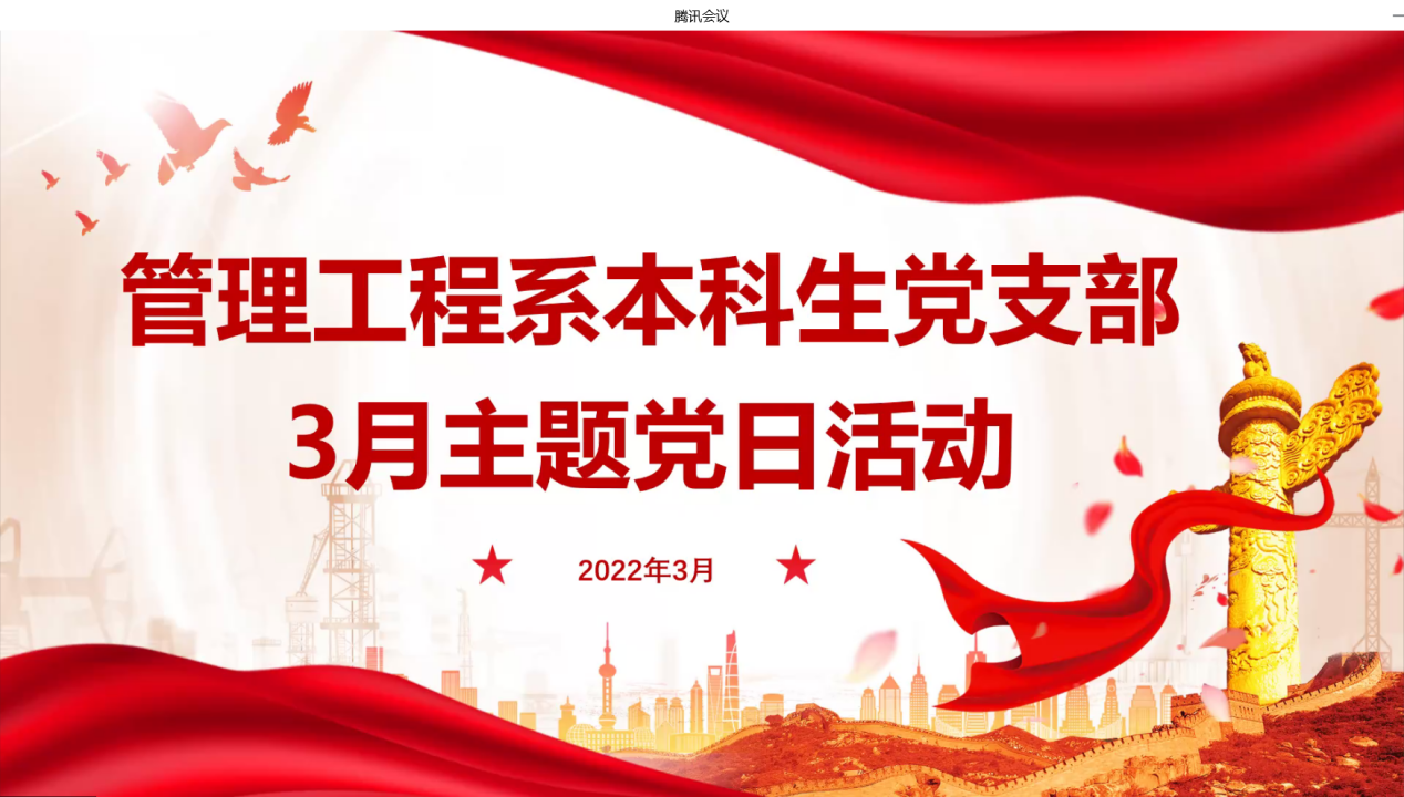 (通讯员:李丹萍)2022年3月31日晚上7点半,威廉希尔中文网站管理工程系本科生党支部在线上通过腾讯会议召开三月主题党日活动。参与人员有支部员工党员与预备党员,会议由张华主持。