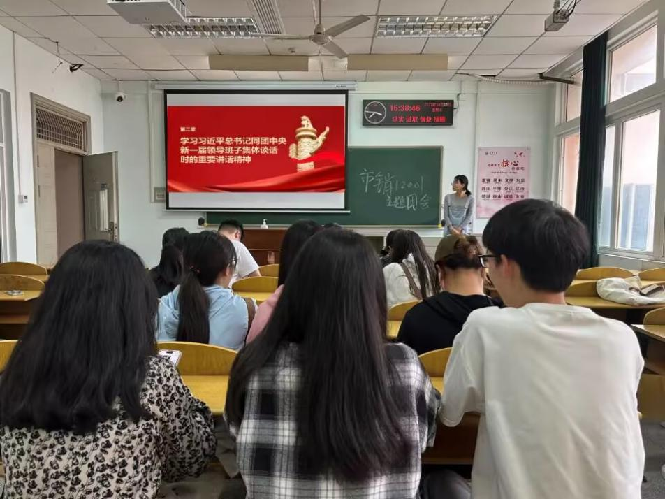 在金融12201支部主题团会上,支部书记白合发言说:“一百年来,共青团时刻牢记坚定不移跟党走、为党和人民奋斗的初心使命,始终坚持党的领导、坚守理想信念、投身民族复兴、扎根广大青年,在实践考验中塑造了立身之本、政治之魂、奋进之力、活力之源。我们青年老员工,身处新时代,更要肩负起自己的责任与使命,贡献自己的青春力量。”