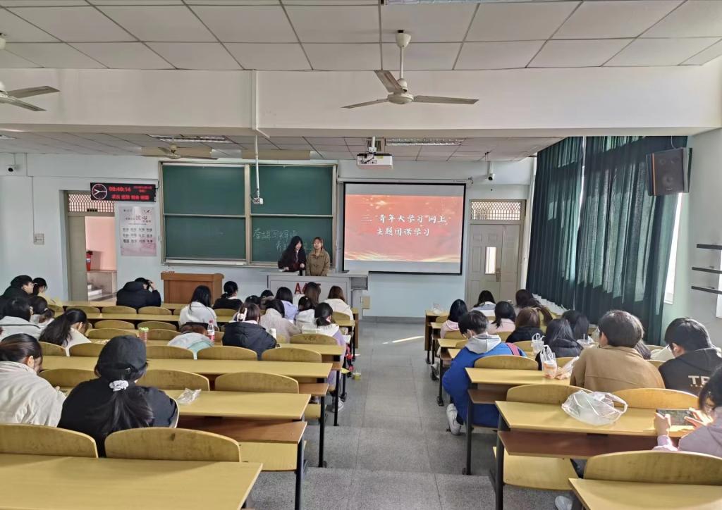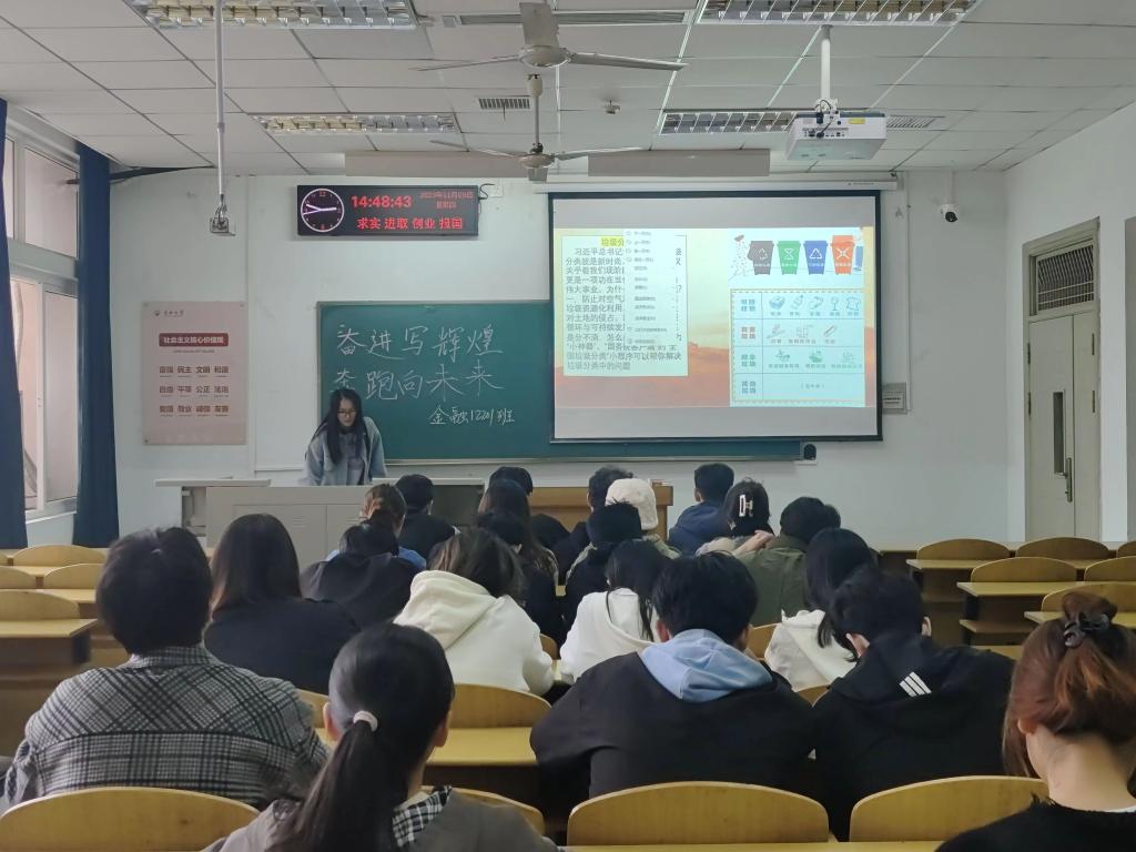 金融12201班团支书在团会中发言:“作为新时代的中国青年,我们将传承老一辈共产党员的光荣传统和坚定信念,将实现中华民族伟大复兴作为终身的奋斗目标,舍小我为大家,用实干为祖国的发展交上一份满意的答卷。”