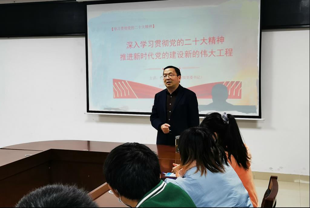 (通讯员 娄君庭)2022年11月24日下午,威廉希尔中文网站在东校区文科楼505会议室组织开展学习贯彻党的二十大精神主题宣讲会。本次宣讲会邀请公司党委书记樊帆教授作了题为“坚定不移全面从严治党,深入推进新时代党的建设新的伟大工程--学习贯彻党的二十大精神”的专题报告,学院辅导员老师、员工党员及入党积极分子共80余人参加学习。