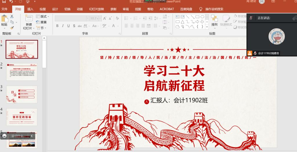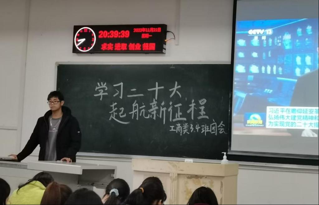 在班会上,学院辅导员、班主任老师首先带领班级员工共同学习党的二十大报告。从二十大的大会主题、三件大事、三个务必开始学起,学习贯彻党的二十大精神,深刻领会中国式现代化的中国特色和本质要求,深刻领会党对青年一代的殷切期望。其次,班长组织员工观看“我们这十年”的学习视频,让同学们进一步了解十年来党和国家的事业取得的历史成就和伟大变革,认识到新时代十年的里程碑意义,并围绕党的二十大提出的新目标、新任务、新要求,引导公司员工坚定不移听党话,跟党走,争做有理想、敢担当、能吃苦、肯奋斗的新时代好青年。随后,各班团副组织班级员工开展“学习二十大,教育在行动”线上答题活动,同学们积极参与党的二十大精神线上答题,并提交了满意的答卷。