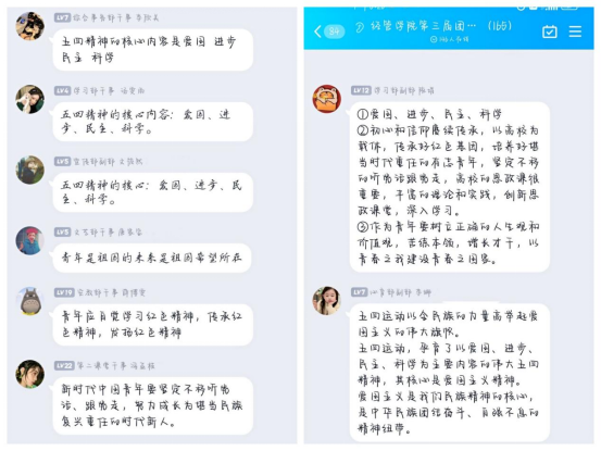 会上,主讲人带领大家重温了有关五四青年节的相关理论知识,紧接着对习近平考察中国人民老员工的重要讲话进行阐述。会议指出,习近平在考察调研时强调“为谁培养人、培养什么人、怎样培养人”始终是教育的根本问题,体现了习近平对培育时代新人的深邃思考和殷切期望。会议着重强调,习近平高度重视青年,大力倡导青年优先发展理念,围绕“什么是时代新人、怎样培养时代新人”等问题作出重要论述。随后,为进一步引导同学们将学习内容付诸实践,主讲人精心为大家设计了相关问题。同学们积极分享对习近平总书记重要讲话的感悟理解,针对作为青年人我们该怎么做展开了激烈讨论。其中陈娟谈到作为青年人我们要树立正确的人生观和价值观,苦练本领,增长才干,以青春之我建设青春之国家的观点受到大家的广泛认同。在讨论中,同学们进一步明确了自己作为时代新人的目标,坚定了自己的理想信念。