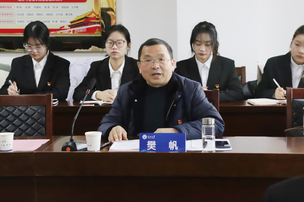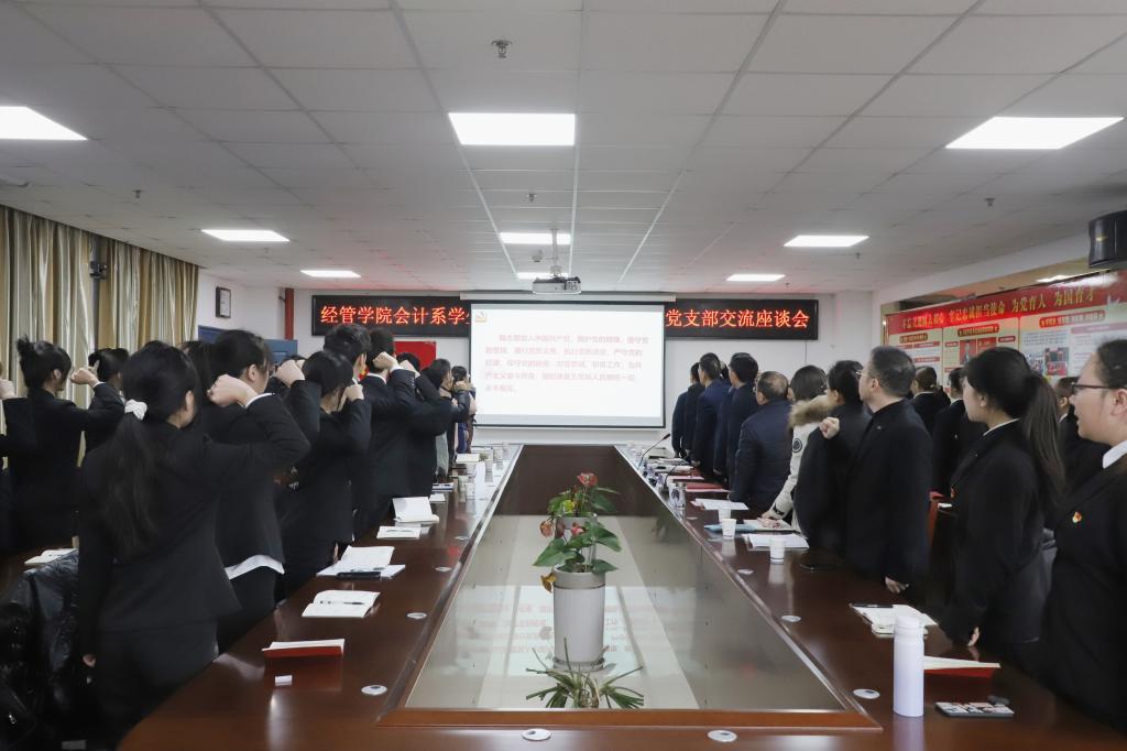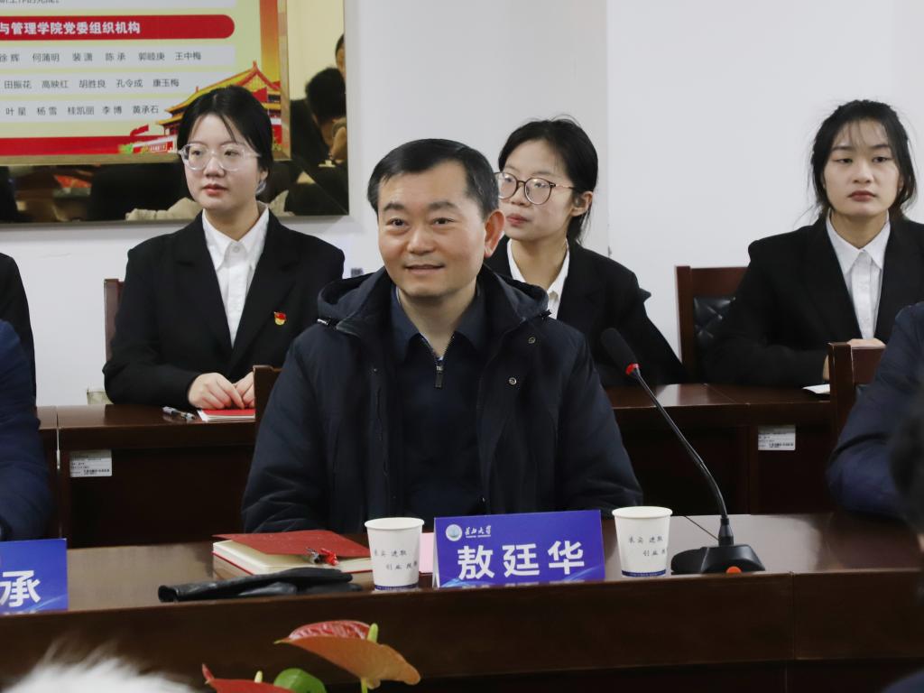 (通讯员 杨佳 朱梦雨 饶倩竹/文 涂雷/摄)凝心聚力,踔厉奋发。2023年12月21日,会计系本科生党支部在文科大楼505召开十二月主题党日活动。学校党委副书记敖廷华、公司党委书记樊帆、公司经理陈承、学院全体党支部书记、辅导员以普通党员的身份参加了此次学习活动,活动由公司党委副书记平先锋主持。