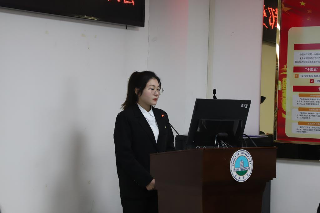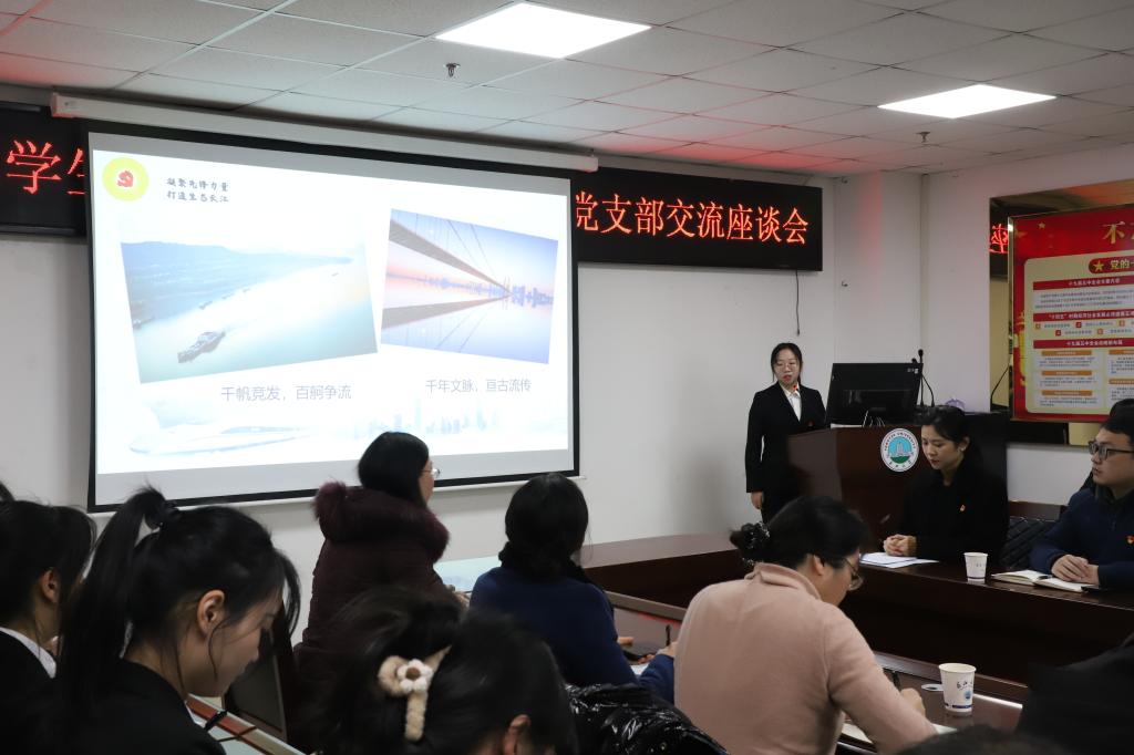 活动伊始,全体党员重温入党誓词。员工党员牟子凡同志首先以《凝聚先锋力量,打造生态长江》为主题进行微党课汇报。牟子凡同志从长江的历史、水文特征、生态价值和水污染四个方面展开介绍,深刻阐明长江经济带发展的重要性以及当前长江生态环境面临的严峻形势。她以此为切入点带领同志们学习习近平总书记关于长江大保护的重要指示批示精神,重温习近平总书记考察荆江时的殷殷嘱托,号召大家在精神上靠近长江,行动上保护长江,共同打造生态长江。