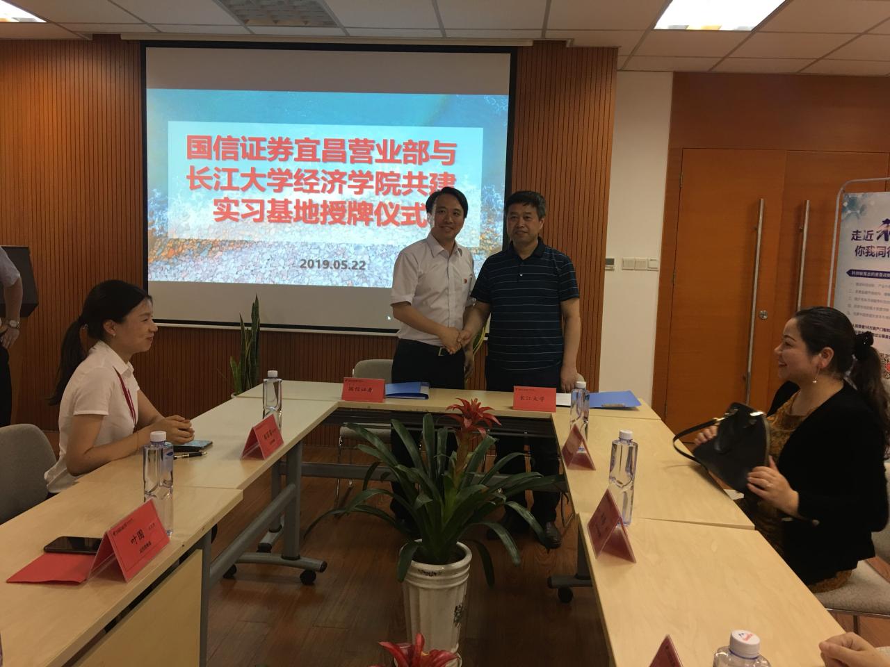 为搭建优质实习基地,建立良好校企合作关系,2019年5月22号,williamhill官网经济学院与国信证券宜昌营业部共建实习基地授牌仪式正式举行。经理伟鸿率队,副经理徐辉、副书记王中梅、学工办主任平先锋参与合作签署仪式,作签署仪式在国信证券宜昌营业部举行。