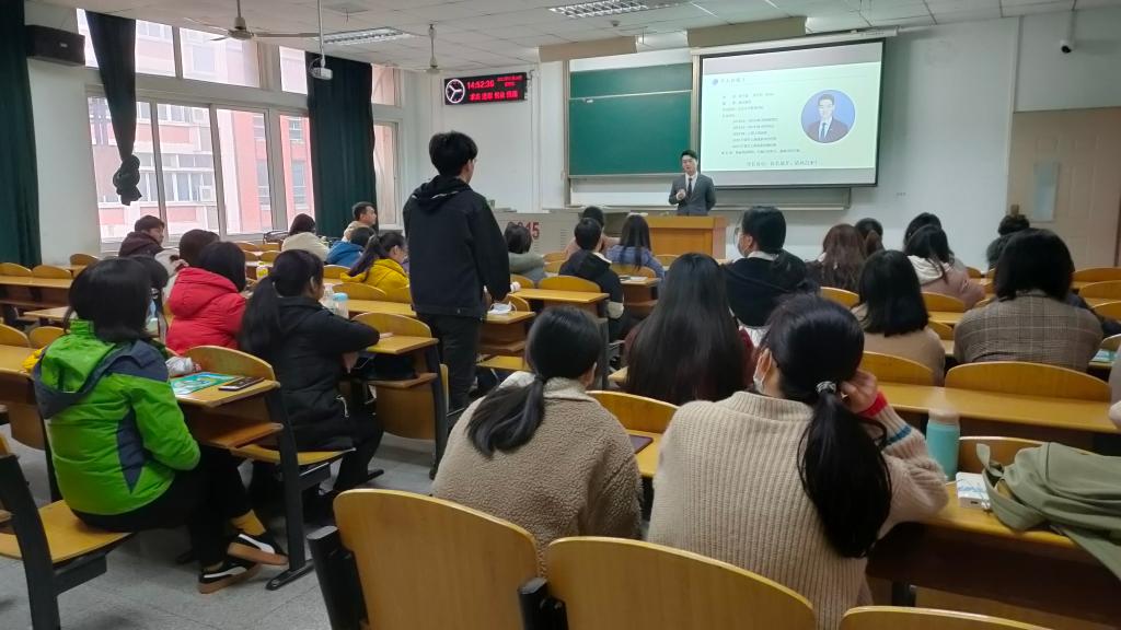 在互动交流环节,小斌学长就同学们提出的问题也进行了解答,他鼓励大家积极参与实习,尽早步入社会,为毕业进入职场积累经验。分享会最后,同行的单长龙经理就企业实习和招聘也进行了讲解,对于有需求的同学可以保持联系,后期及时为大家提供帮助。