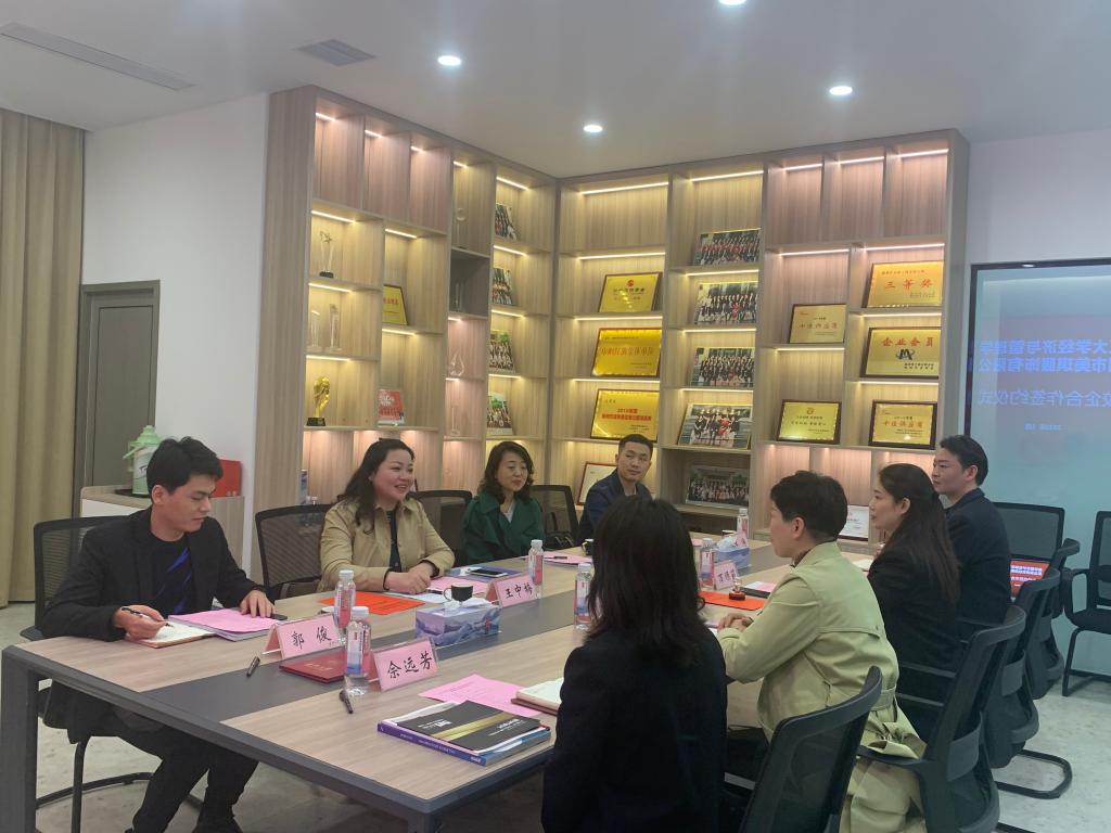 王中梅副书记就公司员工专业课程教育,实习就业现状进行了分享,并对荆州市美琪服饰有限公司为地方经济的发展、社会公益邓方面所做出的的贡献表示赞赏。汪澜老师、就业专干老师就双方今后合作的具体内容与张芹总经理进行了深入探讨。