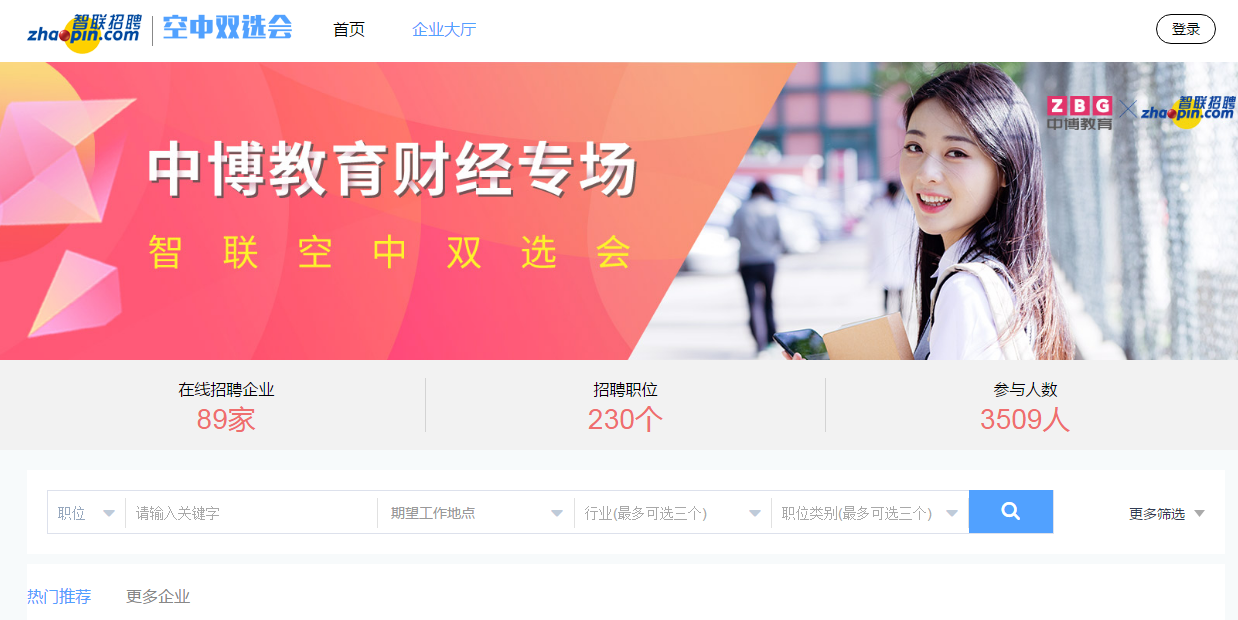 (通讯员 苏帅)为了拓宽毕业生就业渠道,提供精准就业服务,在中博教育的邀请下,英国威廉希尔公司积极动员毕业生参与3月12日正式启动的“中博教育&智联招聘联合举办的财经专场空中招聘会”。