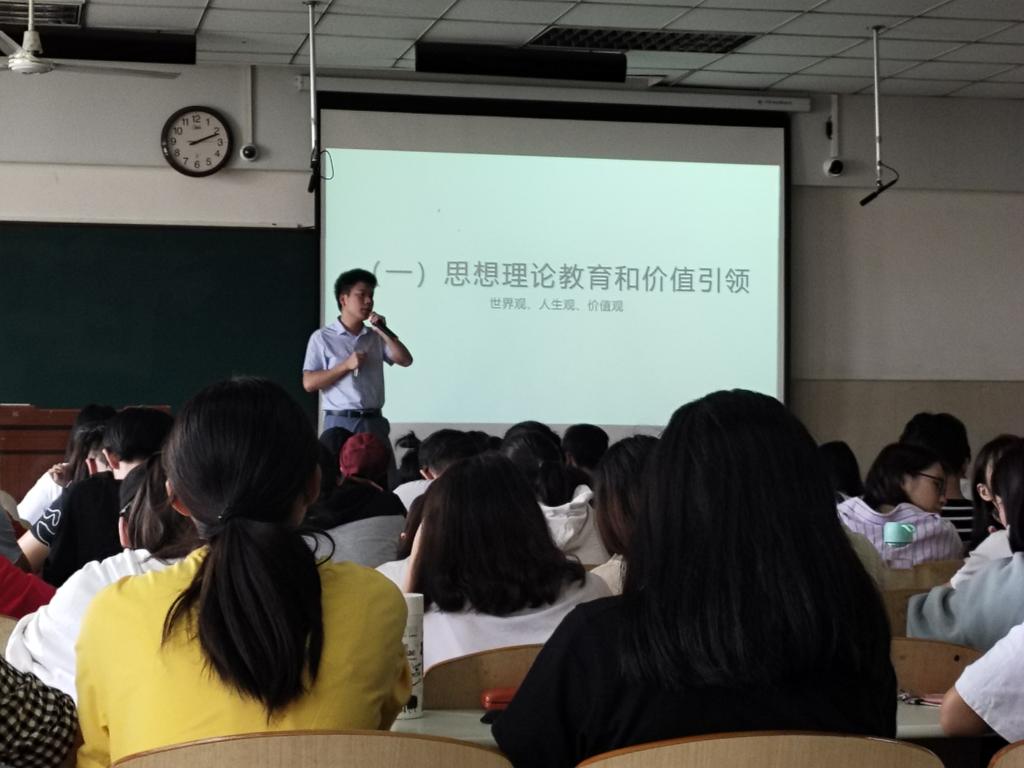 会议伊始,辅导员黄承石老师以快闪的形式进行自我介绍,丰富的内容引燃了现场的氛围。紧接着,黄老师以幽默的语言引出了本次会议的内容,且从思想教育、学风建设、日常事务、心理健康等多个方面为同学们细细讲解了新学期的工作安排。他重点强调了安全问题以及校园贷问题。他说,作为一名员工的首要任务是要注意自身的安全问题,及时履行请销假制度,对校园贷言坚决说不等。会议期间,他还向同学们分享了如何做好自己的生涯规划,建议同学们提前准备,一步步靠近自己的目标。