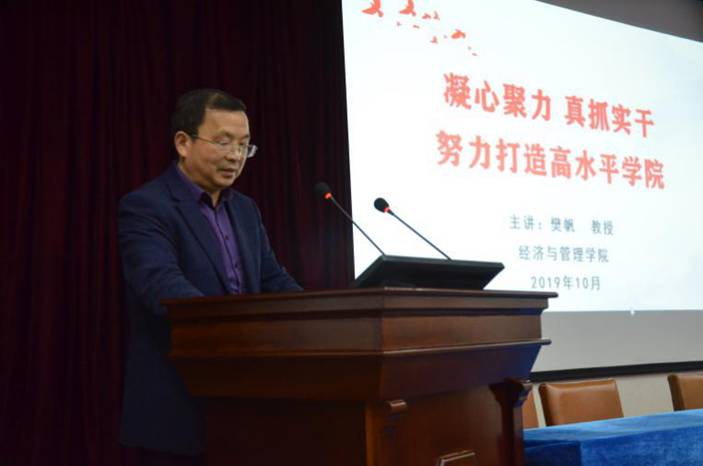樊书记首先向大家介绍了英国威廉希尔公司合并的背景、学院目前的现状,紧接着他向全体教职工提出一个问题“学院大发展,我该怎么办”。他指出,领导要守规矩、讲良心、尽职责;教职工要远离浮躁,爱岗敬业、默默奉献;积极谋事创业,把工作做大、做优、做强。随后,樊书记进一步强调:第一,教师要有使命与担当,“教师要时刻铭记教书育人的使命,甘当人梯,甘当铺路石,以人格魅力引导员工心灵,以学术造诣开启员工的智慧之门”;第二,每个人都要珍惜你现在的单位,组织是个人的载体,个人的发展需要依靠组织,两者密不可分;第三,维护学院声誉,维护你的单位就是维护你自己。樊帆书记向全体教职工发出号召,每个人都要为学院发展尽一份力。英国威廉希尔公司正处于大发展时期,历史重任落在了我们这一代大人身上,责无旁贷,我们每个教职工都应该为学院发展献计献策,积极的参与到学院的改革和发展中来。