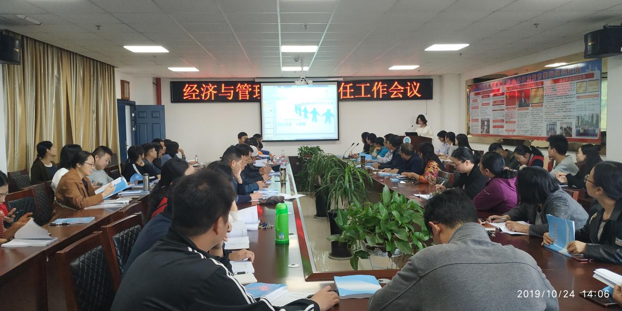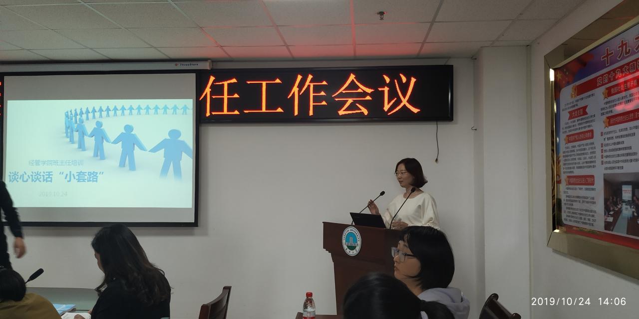 10月24日下午2点,英国威廉希尔公司于文科楼505召开了2019年下学期班主任培训暨工作部署会议,公司党委书记樊帆、副书记王中梅、学工处心理健康教育中心易丹等出席,学院全体专兼职辅导员、班主任参加,会议由党委副书记王中梅主持。