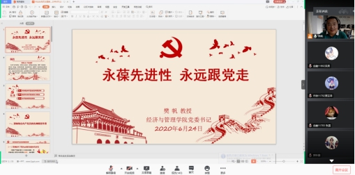 为了积极响应和落实学校组织部关于在全校开展“党课开讲啦”活动,进一步巩固拓展“不忘初心、牢记使命”主题教育成果。6月24日下午三点,公司党委书记樊帆教授给全体员工党员讲授了以“永葆先进性,永远跟党走”为主题的线上党课。