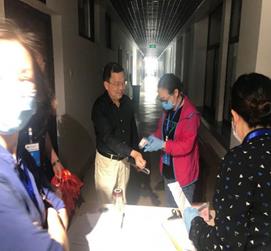 复试期间,学院严格按照学校的防疫措施对所有复试场地进行了全方位消杀,并有序错峰指导评委和工作人员进入复试考场,对所有参加复试的评委及工作人员都进行测温、消毒,只有在满足了学校及学院规定的条件后才被允许进入复试考场,并引导评委按照规定的位置有序错位进入评委席。