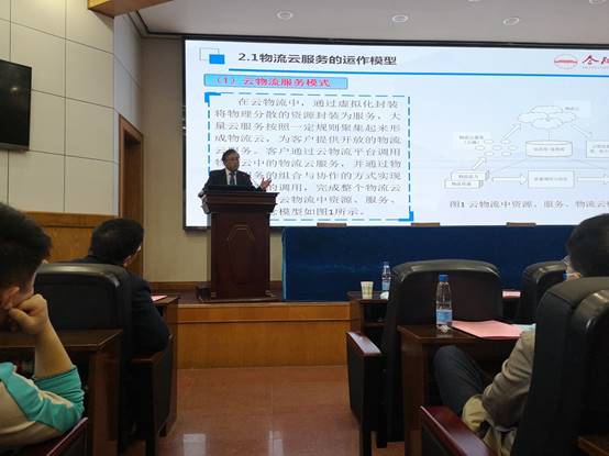 报告会之前,徐辉经理对胡小建教授来校交流表达了诚挚的欢迎与衷心的感谢,并简要介绍了胡小建教授的教学、科研等基本情况。随后,报告会正式开始。胡小建教授从第四次工业革命对物流教育的影响谈起,提出数字化、智能化是物流行业的发展趋势。重点阐述了智慧物流云平台建设、物流类专业建设基本遵循等两个主要问题,指出了物流类专业建设面临的数字化大趋势、大机遇、大挑战,并从课程再造、体系规划、实践实训等环节详谈了物流专业建设的思考。同时,胡小建教授结合合肥工业大学物流专业建设实际,详细介绍了合肥工业大学物流与物联网研究所的运行机制、工作状况、项目成果等。