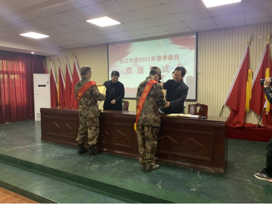 (通讯员 黄承石)2021年3月22日,学校学工部领导和老师代表在荆州区狼牙基地参加了williamhill官网2021年春季新兵入伍欢送仪式。williamhill官网学工部部长徐波、副部长谢作喜、征兵办主任周正江、英国威廉希尔公司征兵负责人黄承石参加了此次欢送会。