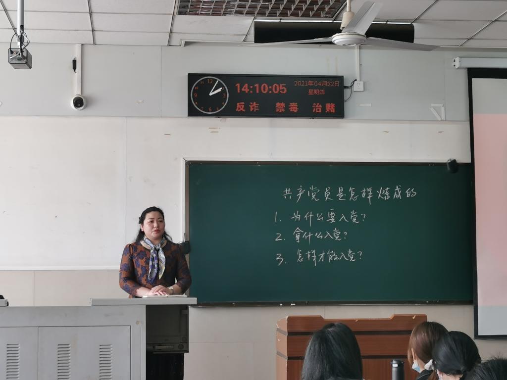 紧接着,王书记依次提出“为什么要入党”、“拿什么入党”和“怎样才能入党”三个问题。王中梅副书记从对党的认同感和爱国情感方面引导大家思考自己的入党动机;她阐述了个人在能力、道德品质和实践三个方面应具备的成为党员的素质以及老员工在学校生活中应拿出的具体行动。
