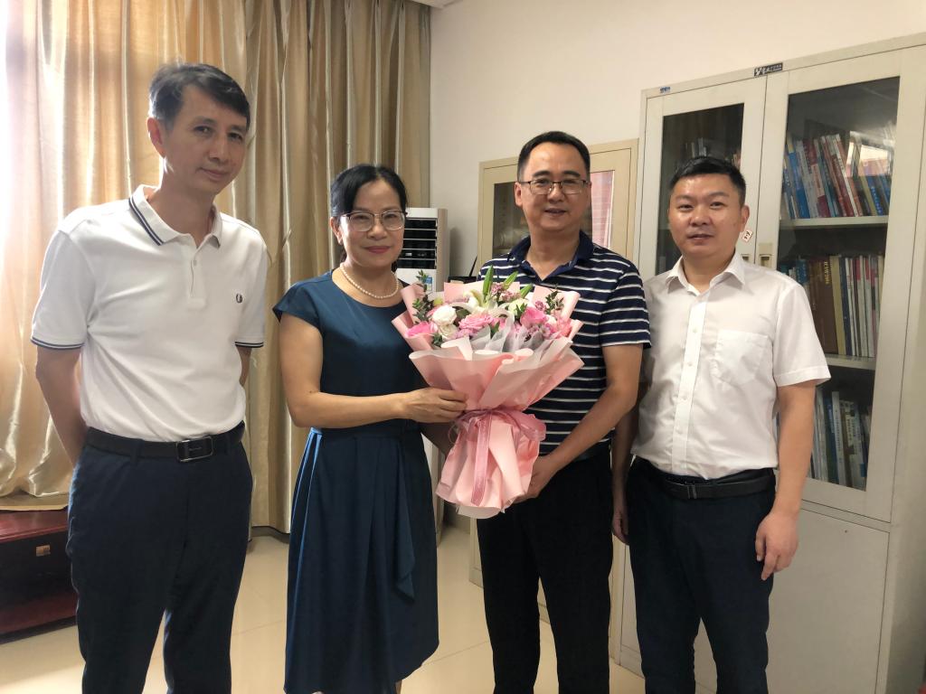 王建平副书记来到徐辉教授和李诗珍教授的办公室,与他们亲切交流,了解他们的教学科研工作进展与成果,向他们长期以来为学校发展做出的积极贡献表示诚挚的感谢,并送上鲜花和祝福;王建平副书记希望两位教授能继续发挥自身的优势和专长,在学科专业建设、创新团队打造、产学研工作等方面发挥核心作用。