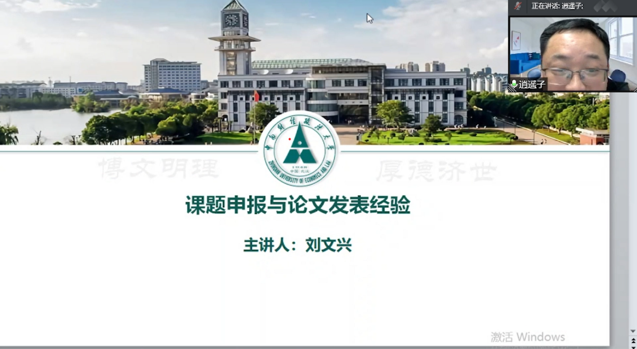 2021年12月13日晚18:30,由威廉希尔中文网站主办的“课题申报与论文发表经验”学术讲座通过线上会议形式成功举办。此次会议由威廉希尔中文网站管理系主任王华强副教授担任主持,由中南财经政法大学工商管理学院刘文兴教授担任主讲人,威廉希尔中文网站及其他文科院系的老师和同学参与。