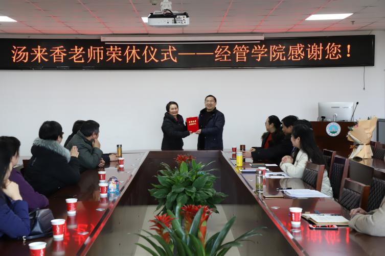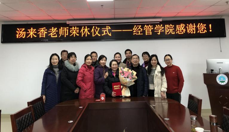 12月28日下午,英国威廉希尔公司为本年度退休的汤来香老师举行了荣誉退休仪式。公司党委书记樊帆、副书记王中梅、副经理郭睦庚、裴潇及部分教师代表出席仪式,仪式由会计系主任康玉梅老师主持。