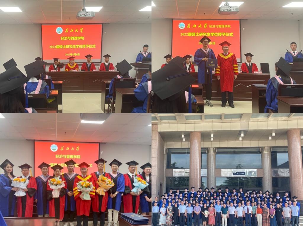 仪式伊始,主持人以一段充满热情的开场白拉开了学位授予仪式的帷幕,全体研究生集体起立奏唱国歌。经理徐辉依次为每一位研究生拨穗,授予硕士学位证书并合影留念。接着,毕业生代表为各位导师代表献上花束,感谢导师们的辛勤栽培。最后,毕业生们与众位导师移步教学楼下集体合照,至此活动结束。