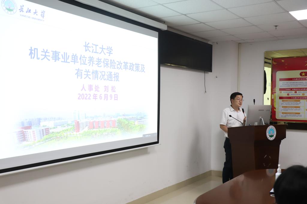 校人事处刘松副处长应邀到公司为全体教职工作了williamhill官网机关事业单位养老保险改革有关政策及情况通报。他围绕学校养老保险的历史沿革、政策依据、核算方法、改革目标等四个方面对学校的养老保险改革进行了详细的政策解读。