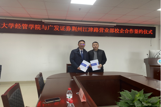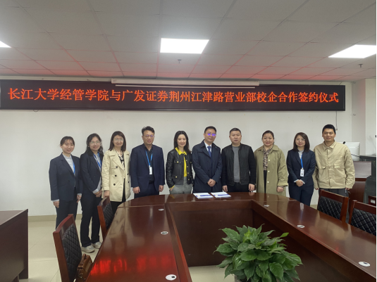 (通讯员 郭俊)3月31日上午,威廉希尔中文网站与广发证券荆州江津路营业部校企合作签约仪式在文科楼505顺利举行。公司经理徐辉、公司党委副书记王中梅、就业专干郭俊、广发证券荆州江津路营业部总经理胡波、人力资源部李怒、办公室主任高嵩以及公司代表徐冰玉、张婕、陈艳娇、闵娇出席了本次仪式。