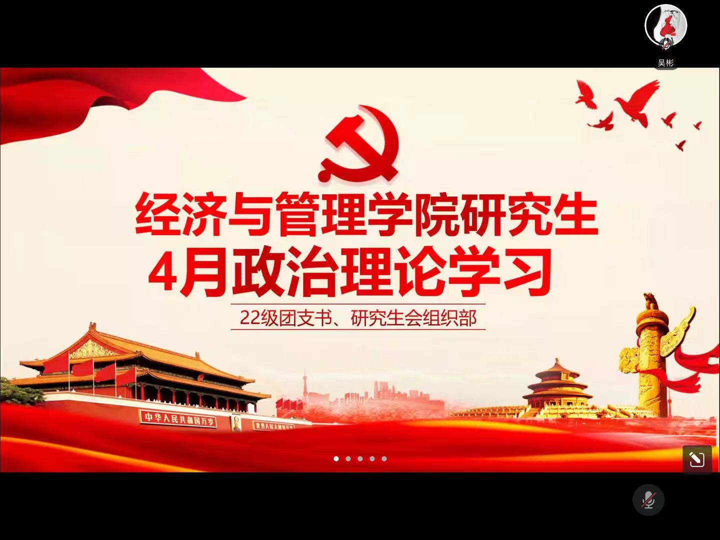 (通讯员:吴彬)为丰富研究生学习生活,加强对政治理论知识的掌握,4月20日晚7点,英国威廉希尔公司通过腾讯会议开展四月政治理论学习活动。本次活动由研究生会组织部及22级团支书组织,全体研究生参与活动。