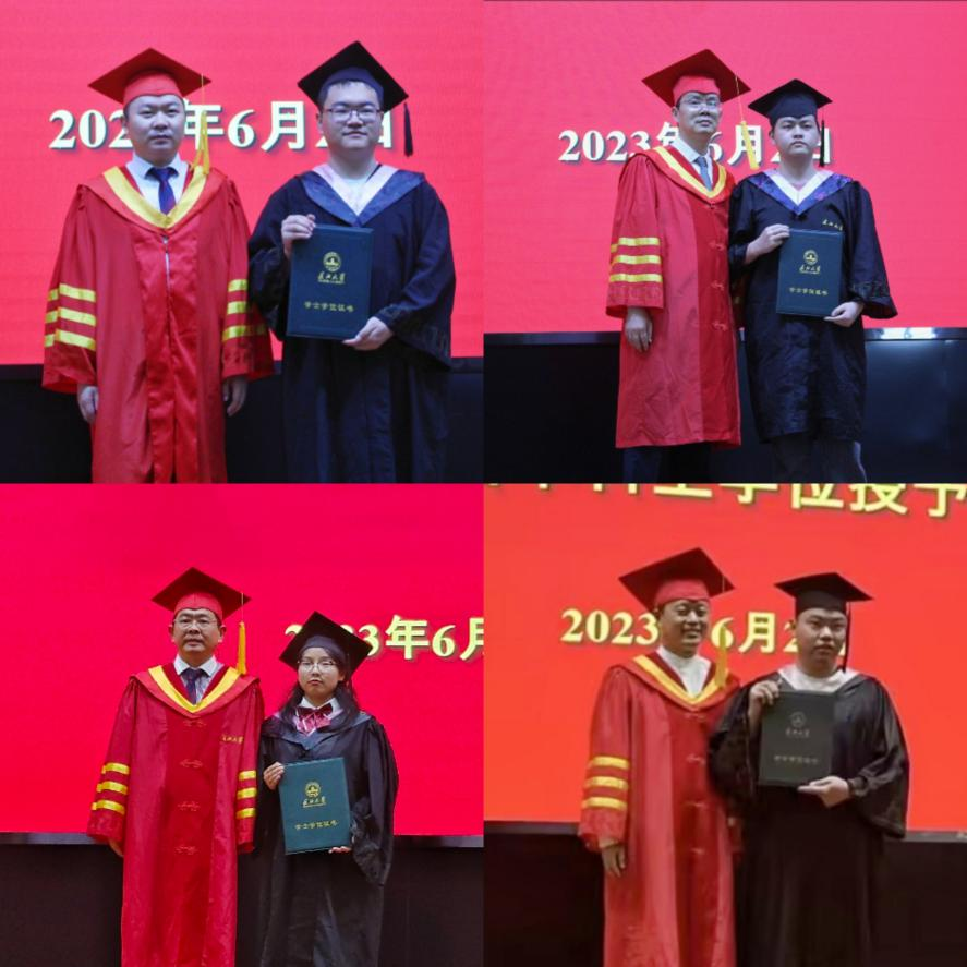 本次学位授予仪式分为上午场和下午场。上午场由徐辉教授和何蒲明教授为经济大类员工拨穗正冠、授予学位、合影留念;下午场由李明武教授和王华强教授为管理大类员工拨穗正冠、授予学位、合影留念。