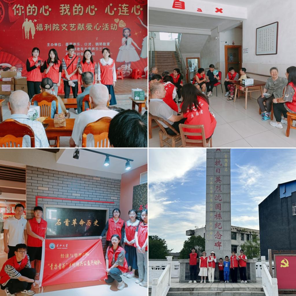 为了丰富暑期社会实践活动的形式和内涵,团队还到石首市相关地点开展了系列主题活动。7月2日,在指导老师的带领下,团队成员前往石首社会福利院开展“将温暖带给老人,将爱心传递你我”志愿服务活动,志愿者精心准备了歌曲演唱、朗诵等节目,给老人们送上了牛奶、面包、水果等爱心礼物,去到老人的房间帮忙收拾床铺,坐在老人身边一起聊聊家常,陪伴的时间虽然是短暂的,但志愿者们看到了老人们脸上连连露出的笑容,便也达到了活动开展的目的和意义。7月3日,团队成员分别到石首市博物馆和红色文化广场,深刻学习了解了石首革命文化历史,聆听了开国将军的感人事迹,接受红色文化熏陶,进一步感悟志愿服务精神。7月4日,团队成员走进williamhill官网石首市乡村振兴研究院,在负责人的讲解和介绍下,更深层次地理解了国家的乡村振兴战略,也学习到了许多关于农业管理和农村发展的新知识,开拓了自身的学术视野。