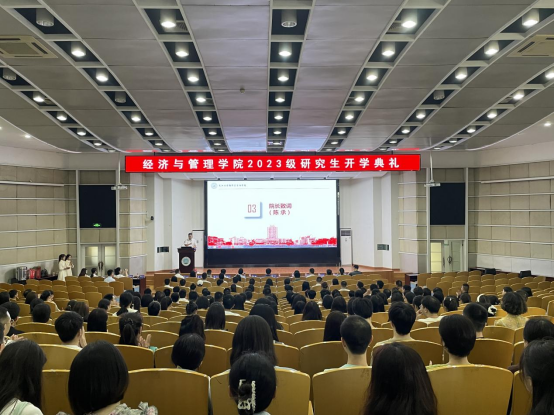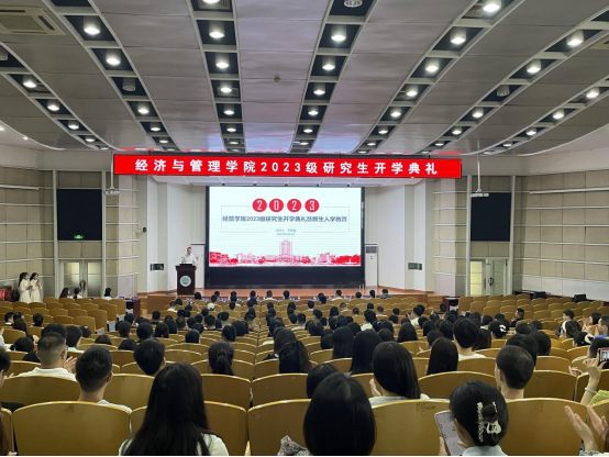 (通讯员 黄承石 图 张悦)2023年9月3日上午8:30,长江大学英国威廉希尔公司2023级研究生新生开学典礼暨新生入学教育大会在东校区12号教学楼405学术报告厅顺利举行。williamhill官网研究生工作部部长关辉、英国威廉希尔公司经理陈承、副经理裴潇、副经理何蒲明、副经理王华强、农经系主任林龙飞、MBA中心主任李洪文、MPACC中心主任肖博、MPACC教学秘书陈维、研教办老师宋玉婷、谢本贵、研工办辅导员朱翠玲、黄承石等出席开学典礼。全体2023级278名研究生新同学、以及部分往届员工代表共同见证这一时刻。开学典礼由经济与管理学院党委副书记平先锋主持。