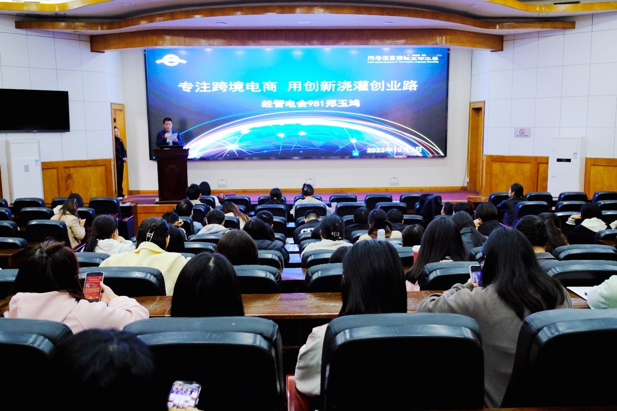 关于创业路,郑玉鸿董事长从情怀与选择、商业逻辑、社会价值、跨境电商出口现状、商业模式创新等方面展开论述。在座谈会上,郑玉鸿通过回顾自己的创业历程,从中分享创业的经验和感悟。她提出,二十年跨境电商创业之路,唯一不变的就是变化,要拥抱变化、不停成长,在创业路上要有情怀,大胆创新。同时,也提醒各位同学未来不要为了利益去铤而走险,在创业路上要能够坚守初心。其次,郑玉鸿阐述了跨界电商的重要性,对跨境电商出口现状、发展特征、趋势做出了解答。她指出,跨境电商进出口结构要不断优化,区域经济传统跨境模式已成江海,中国制造成为跨境电商有力支撑,要多看全球各地文化书籍,掌握贸易习惯和风俗。最后,对行业变化,郑玉鸿深有感触:方向比努力更重要。各行各业都会因为互联网的使用而发生变化,在创业的路上要不断地创新、更新,提醒大家创业一定要冷静,不要盲目创业,更不要跟风。主题座谈结束之后,师生踊跃提问,纷纷就如何成功创业等问题进行了深入交流。