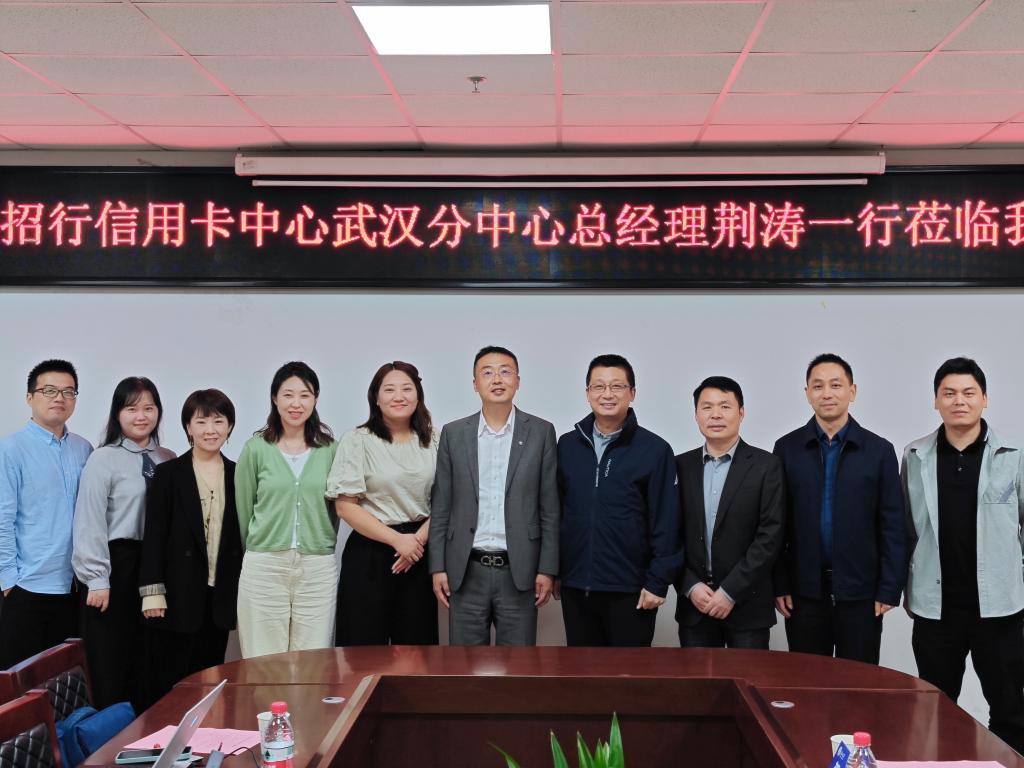 (图/文 贺雄)10月8日,招商银行信用卡中心武汉分中心总经理荆涛一行到访公司座谈交流。员工就业工作处副处长赵长勇,公司党委书记樊帆,经理陈承参加座谈,公司党委副书记平先锋主持座谈会。