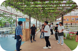 发展乡村旅游,探索农旅融合。调研团成员结合自身专业所学,在蔬菜主题公园与马聂等展开交流,针对土地流转问题,马聂指出,在将农户集中的同时,铜岭村利用腾出土地做农旅项目,开启了乡村产业发展之路。目前,村里流转土地2100亩,打造了铜铃岗蔬菜主题公园,引进七彩花都、恒荣梅园、森林水世界等乡村旅游项目。对于旅游发展,马聂提到,游客到铜岭村,既可以品美食、赏美景,纵情山水,又可以采摘果蔬,体验农耕文化,开展研学。每逢周末或节假日,周边游客纷至沓来,铜岭村成为一处休闲旅游胜地。