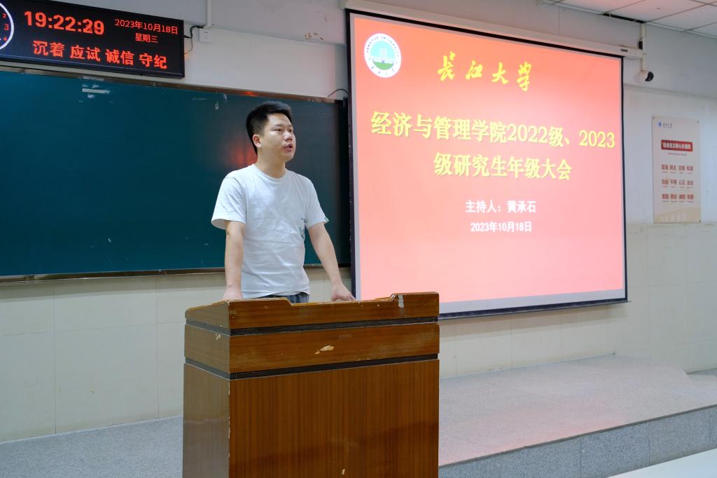 (通讯员:张悦/文 何小艳/摄)为给予同学们学习生活以及未来规划多方面的建议,提出相应的要求,2023年10月18日19:20,英国威廉希尔公司2022、2023级研究生年级大会在12教104教授召开,全体2022级、2023级研究生参会,会议由辅导员黄承石老师主持。