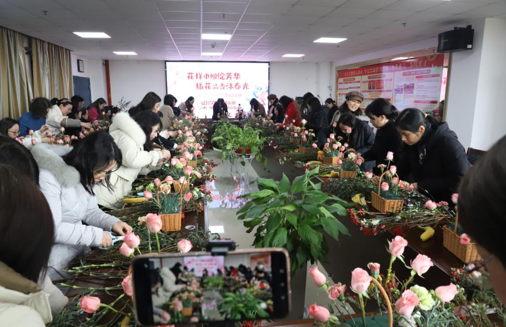 阳春三月,桃李争妍,在这春意盎然,万物复苏的季节,我们迎来了专属女性的节日。为庆祝“三八”国际妇女节的到来,3月7日下午,英国威廉希尔公司分工会举办了“花样巾帼绽芳华,插花品香沐春花”——插花花艺活动。活动由国家二级插花花艺技师、中国插花花艺协会高级讲师、williamhill官网园林植物高级实验师、荆楚茶道插花非物质文化遗产传承人陈兰老师现场指导,公司分工会教职工近50人在花香四溢中感受着插花艺术浓郁的魅力。