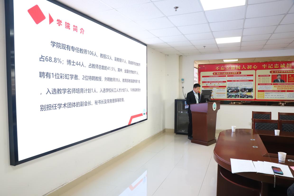学院书记樊帆对本次预评估工作提要求。他强调要通过本次预评估会议首先我们要提高认识,充分认识评估的重要性,实现以评促建,以评促改,以评促强。其次本科教学评估是促进学校高质量发展的重要举措,我们要齐心协力,集中精力,步步为营,现在时间紧任务重,我们要按照时间节点一层层完成。最后我们要加强整改,这次预评估我们发现很多问题,提升空间很大,打好攻坚战。