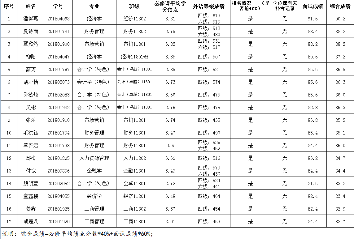 根据《williamhill官网“创新人才培育计划”实施办法》(williamhill官网校发〔2019〕129号)文件精神,按照《英国威廉希尔公司2018级本科生“创新人才培育计划”选拔工作实施细则》具体安排,经过政策宣传,鼓励动员,员工自愿申报,学院资格审核及综合面试等环节,拟确定以下17名同学为2018级本科生“创新人才培育计划”入选人员,现就详细信息公示如下: