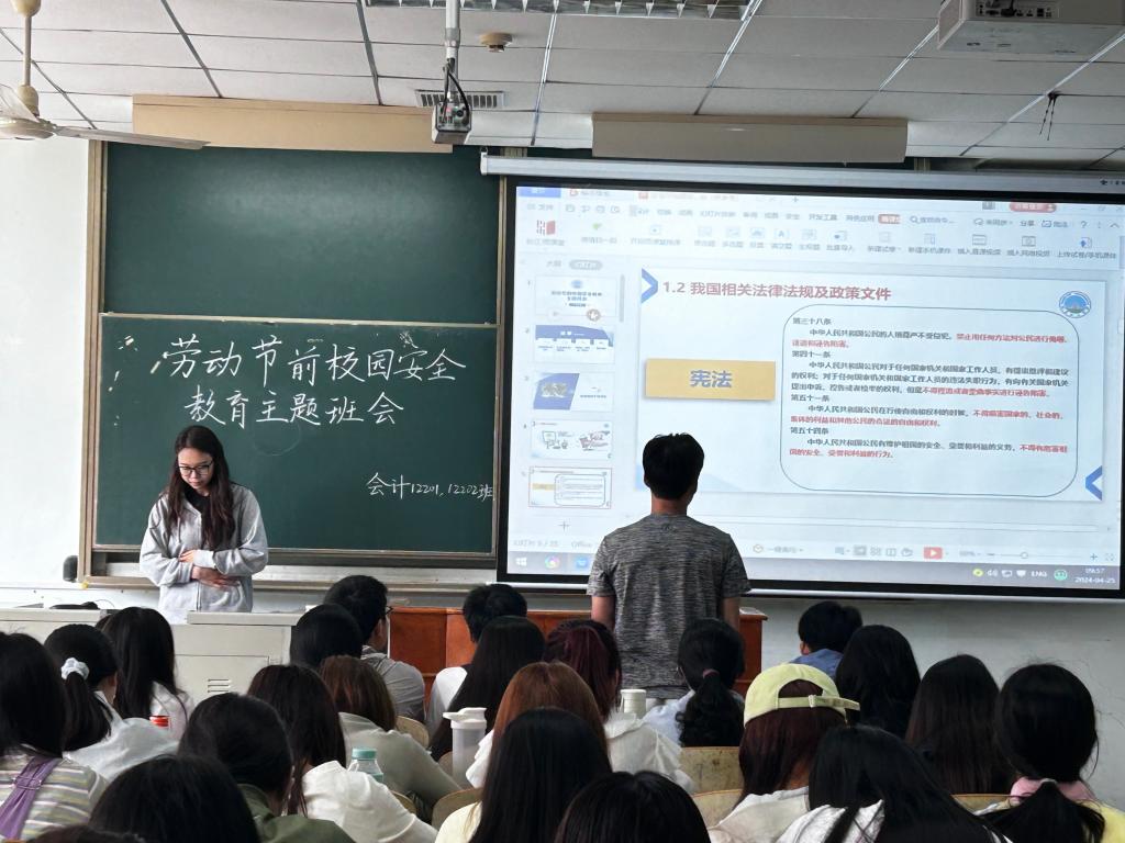 公司高度重视此次教育活动,由学工办统一进行安排,再由各年级辅导员分别进行详细部署,认真落实节前员工安全教育工作。各班级召开安全教育班会,从交通、消防、防溺水、防诈骗等多个方面对员工进行安全教育。