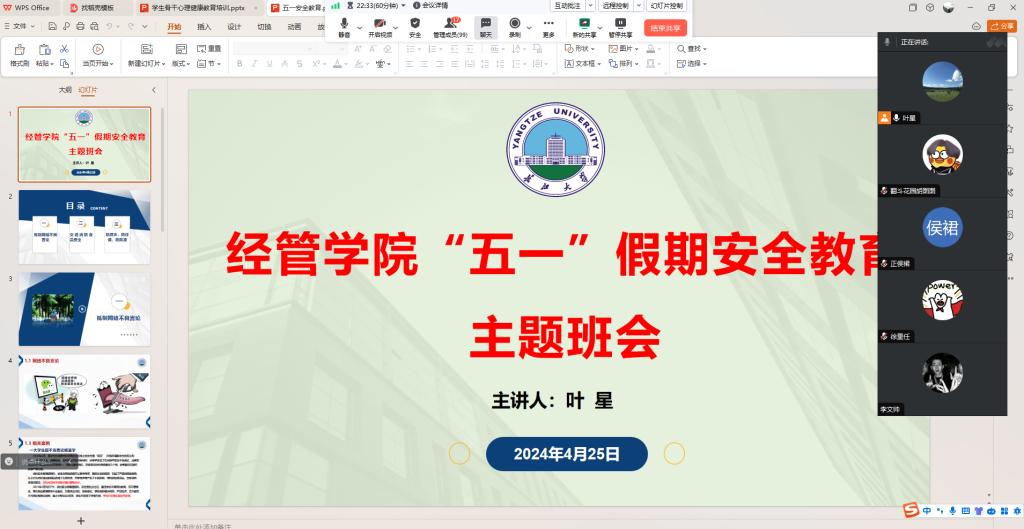 (通讯员:金小晶)“五一”假期临近,经管公司积极响应学校号召,开展五一假期安全专题教育活动,旨在加强员工假期安全管理,关注员工安全问题。