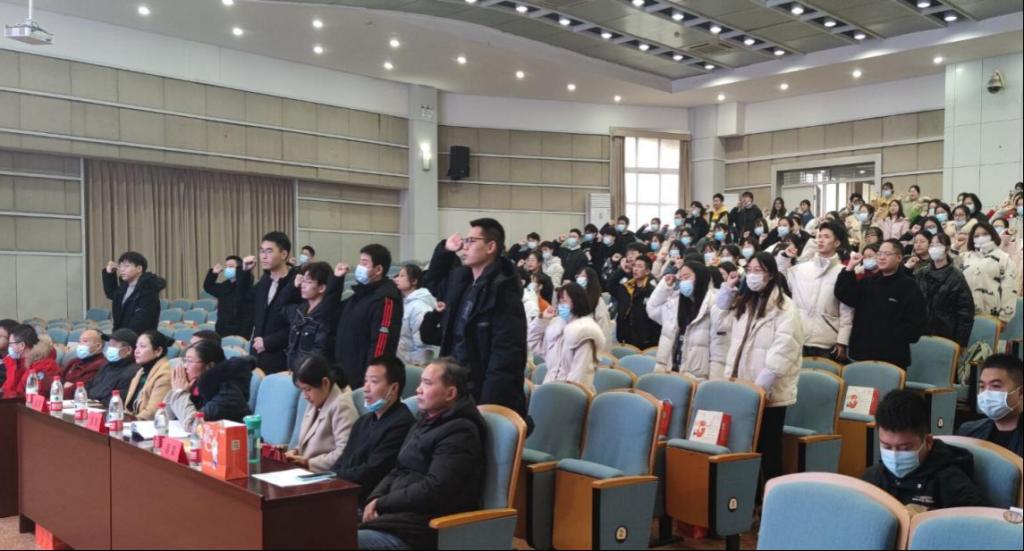 会上,辅导员娄君庭进行研究生考试考风考纪教育,宣读了考风考纪管理文件,提醒考生诚信考试,并且注意疫情防范。考生进行诚信考试集体宣誓,承诺将自觉遵守考试纪律,公平参与考试竞争。