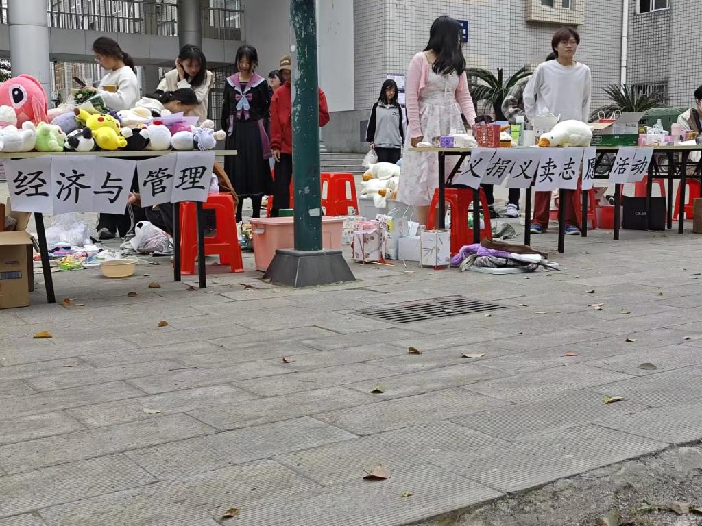 此次活动主要分两个阶段进行。第一阶段,3月21日至3月22日,组织“义捐”活动,在西校区六七教线下摆点,实践部提前准备好桌椅,收纳捐赠物资的工具,以及物品名单登记表等。活动开始后,参与“义捐”活动的同学们自觉排成一条条长队,手里拿着将要捐赠的物品,有的是一本书,有的是一个玩偶,有的是一些日用品……