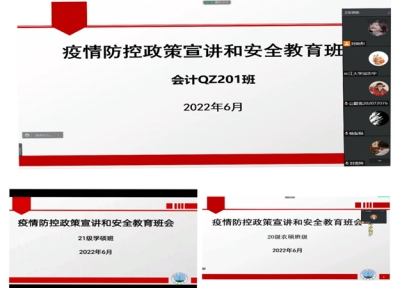 (通讯员:张杰)为进一步落实国家疫情防控政策,加强学校疫情防控要求,结合当前毕业生安全离校、防溺水、员工考试等相关安全教育要求,经济与管理学院研究生各年级各班于6月1日—6月5日采取线上线下相结合的方式,面向全体研究生召开了“加强疫情防控和安全教育”主题班会。